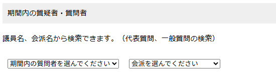 ●期間内の質問者(議員名)での検索