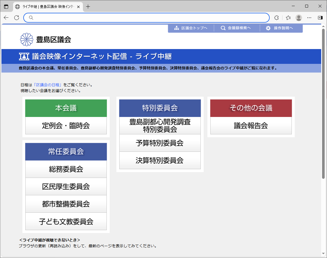 ライブ中継映像の視聴には、インターネットブラウザの設定でJavaScriptを有効にする必要があります。詳しくは、お使いのブラウザのマニュアルなどをご参照ください。 |